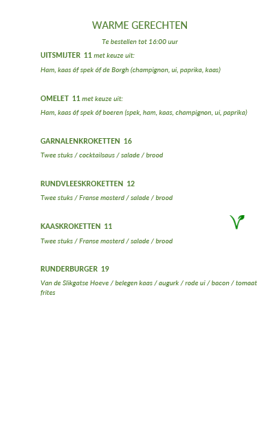 Bestellingen graag via mail: info@hoteldeborgh.nl of bel ons op 0168-324344.