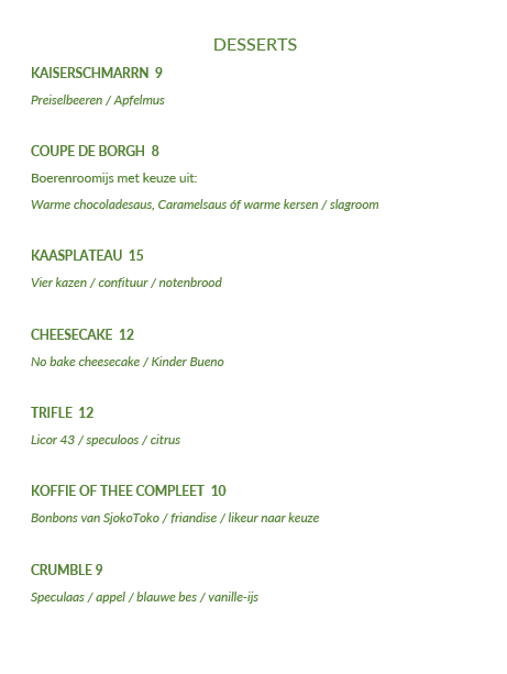 Onze menukaart